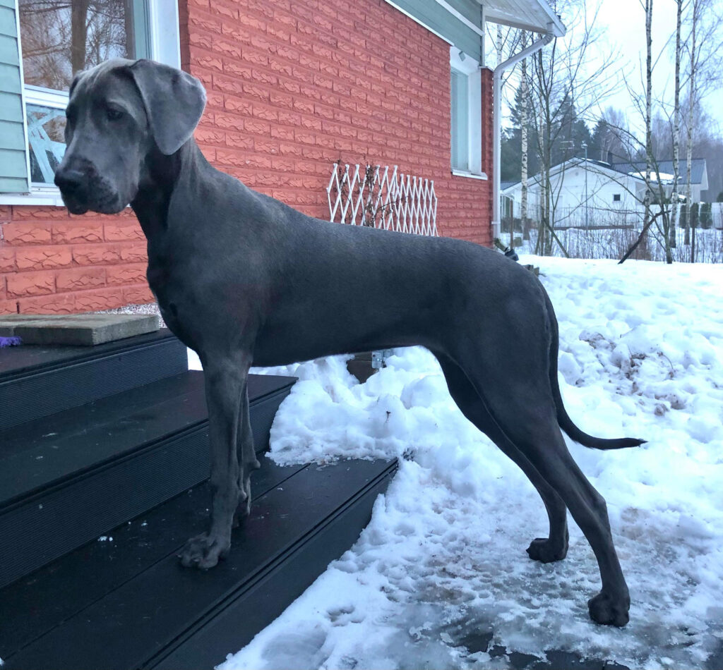 Venlan säkäkorkeus on nyt 76 cm, selän pituus jotakin hyvin samansuuntaista ja paino noin 46,5 kg.