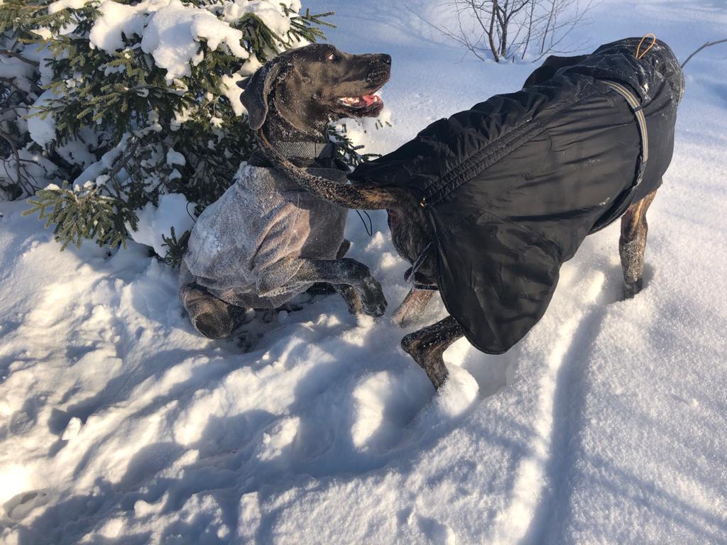 Ainoa harmi, mikä lenkiltä tuli, oli että Venlan useammastakin varpaasta aukesi kynsinauhat pakkasen ja lumen yhteisvaikutuksena. Nyt täytyy vähän seurailla, ettei Venla yritä itse hoitaa varpaitaan liiaksi.