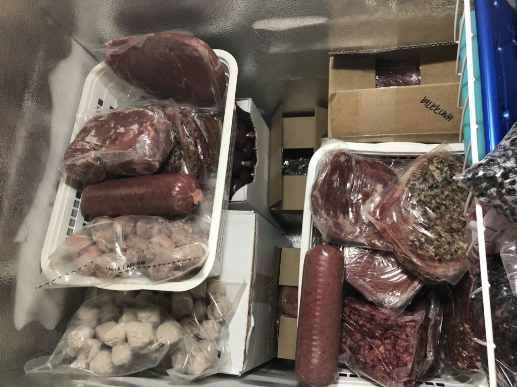 Nappulan lisäksi Venla syö Kennel-Rehun lihoja (linkki aukeaa uuteen ikkunaan). Alussa lihamäärät olivat pieniä, maisteluun ja totutteluun sopivia ruokalusikallisia. Lihan osuutta on nostettu maltillisesti, mutta tasaisesti, ja nyt 9,5 kk iässä koko päivän ruoasta neljännes on lihaa. Tavoitteenani ja tarkoituksenani on siirtää Venla 50-50-ruokinnalle, jossa noin puolet ruoasta on nappulaa ja puolet lihapohjaista. Suhdeluvuksi saattaa kehittyä lopulta vaikka 70-30, mutta yhtä kaikki – ajatuksenani on, että koira pystyy syömään monipuolisesti “vähän mitä vaan”, eikä sen maha menisi sekaisin äkillisistäkään muutoksista ruokinnassa.