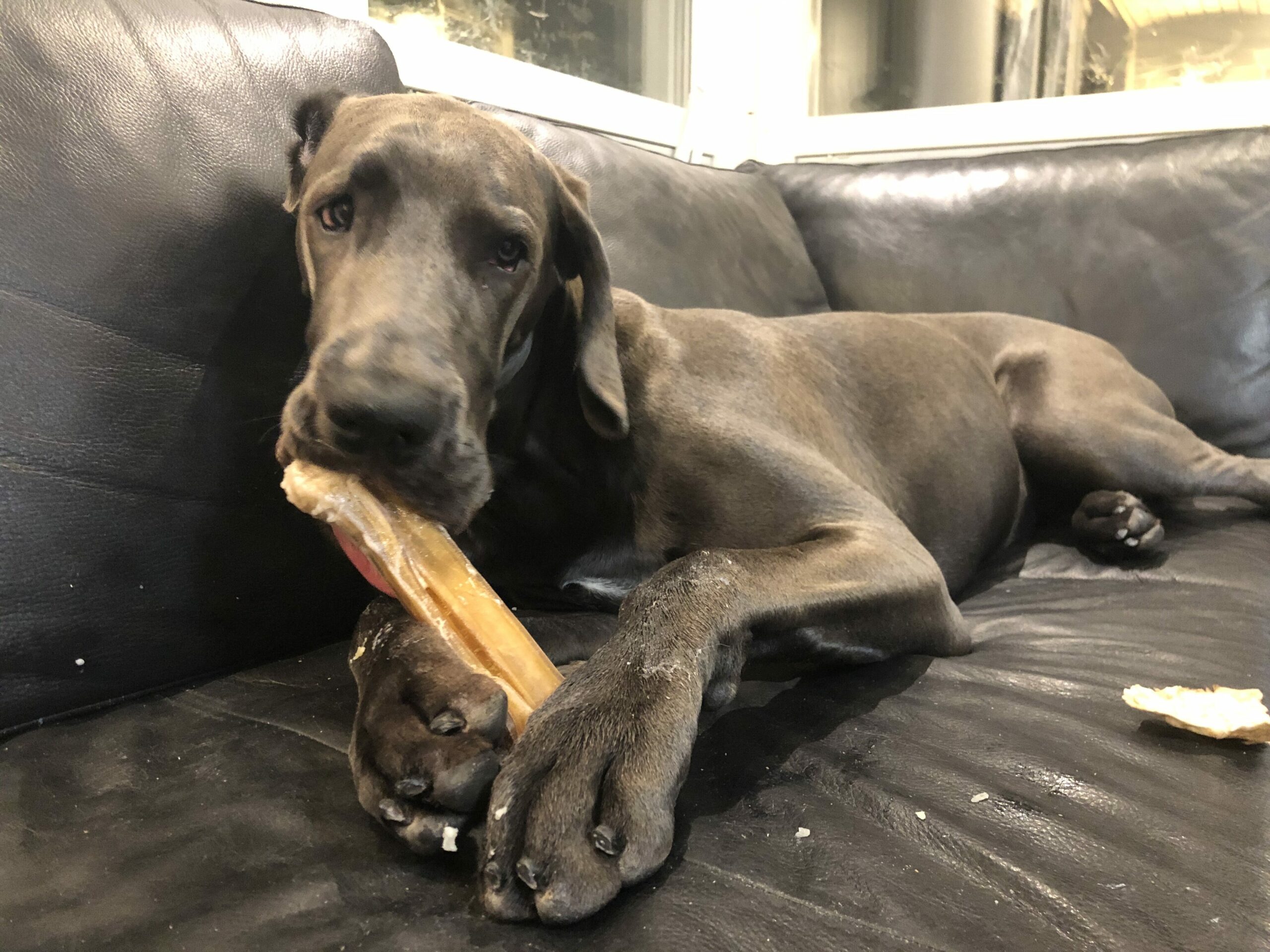 Ruoka-aterioiden lisäksi Venla saa kaluta naudan potkaluita tai vaihtoehtoisesti ihan vaan perinteisiä possun tai naudan nahasta tehtyjä nahkaluita. Kaikki sopii sille. Luuainesta sisältäviä ruokia tai ajanvieteluita olen tarjonnut pentu- eli kasvuaikana hyvinkin maltillisesti, lähinnä – jälleen kerran, – totuttamismielessä. Ja kyllähän se koira nauttii aivan suunnattomasti ajastaan muhkean ydinluun äärellä!