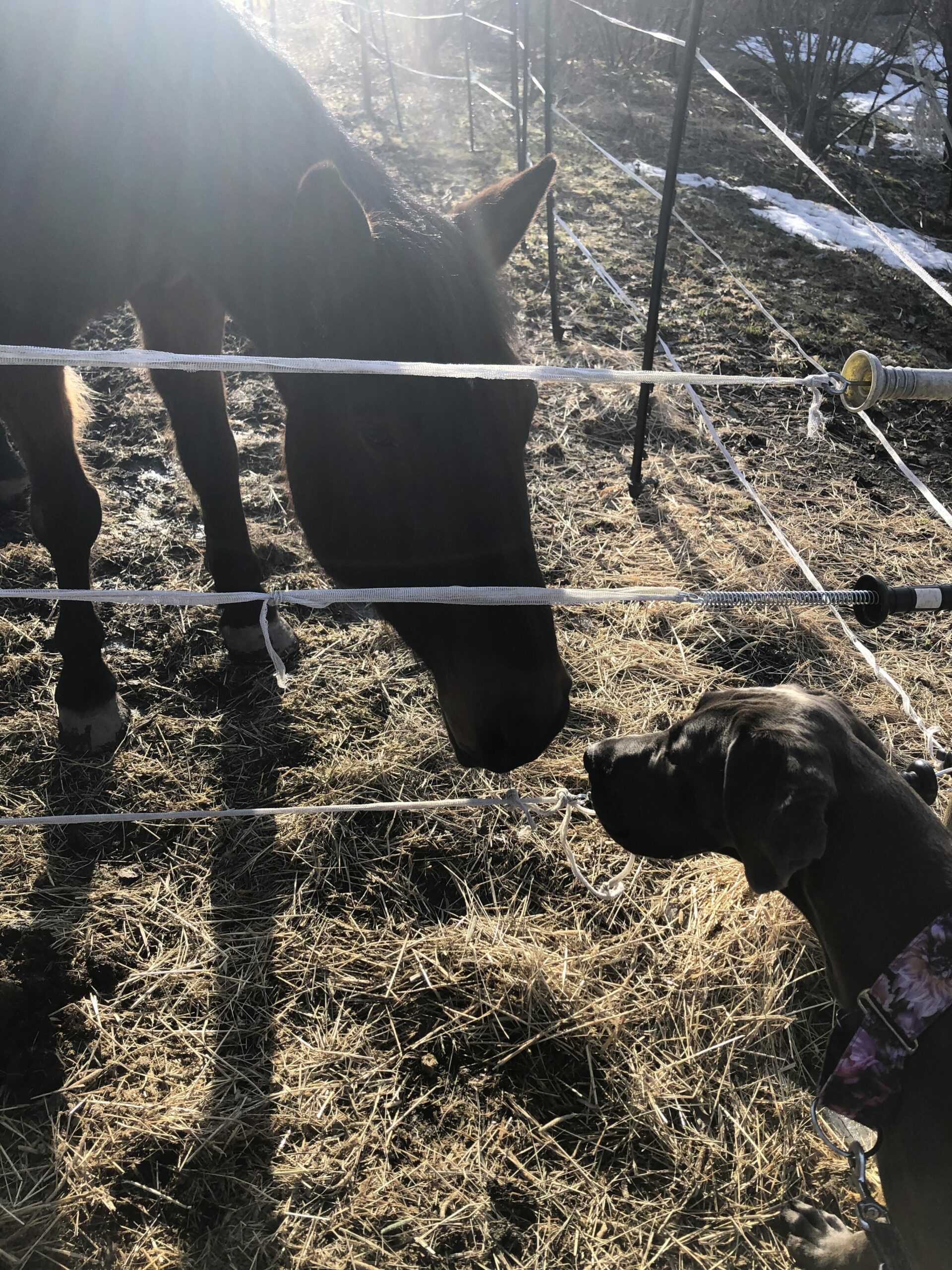 Venlan pääsiäinen sisälsi paljon touhuamista pihalla Papan perässä kulkien, jätti-isojen koirien eli hevosten kohtaamista, lenkkeilyä ja köllöttelyä sohvalla sopivassa suhteessa. Myös siskontyttö Neiti T kävi tapaamassa Venlaa ja meitä.