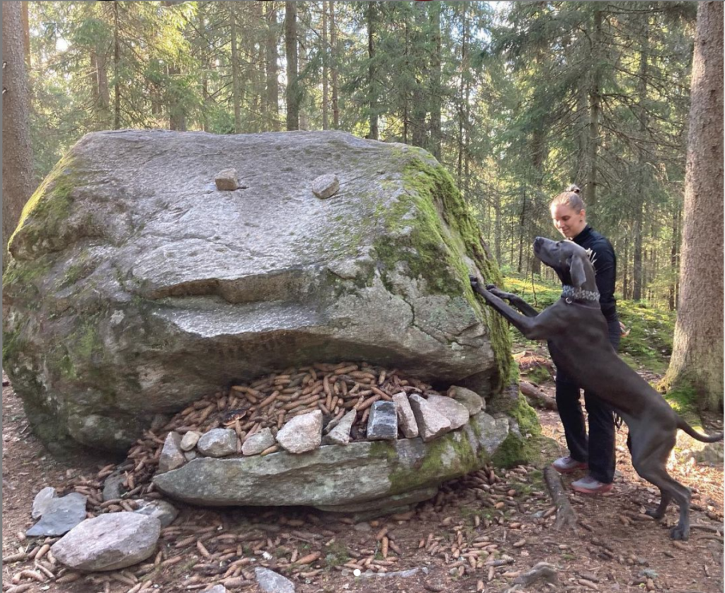 Tällä kertaa päätimme ajaa mökille pientä kiertoreittiä, kohteenamme Askolan Kirnukallioilla sijaitsevat hiidenkirnut. Olemme itse asiassa käyneet täällä käyneet mooooonta vuotta sitten, ja mukanamme oli tuolloin Hertta <3.