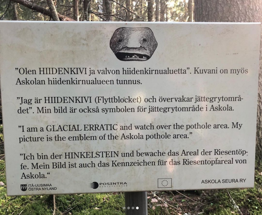 Askolan hiidenkirnujen alueelle vie noin puolen kilometrin pituinen ihana metsäinen lenkki. Aluetta vahtii tietenkin Hiidenkivi, joka on sekin on hyvin vaikuttava ilmestys heti lenkin alussa. 😀